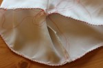 Well, thinks I, you’ve been considering buying a special concealed zipper foot for a while, why not see if there’s something that’ll make hemming this minx-y material slightly less traumatic. And, I did*. I tried both a picot and a narrow hem on the bottom of my jammie legs. Neither device dealt particularly well with the seams where there were too many layers of material to feed through effectively. Mea Culpa, at least in part, as I’ve overlocked the seams together meaning I was trying to feed through 4 layers of fabric. Next time, I would try hemming before deciding on a inside seam finish. After all, I can see my imperfect hems but not the perfect over-locked seams. *Sigh*.