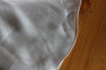 So that stash fabric that I chose? Don’t know what it’s made from but it’s been a challenge to work. It’s not just the fluidity of the material that makes it slide gracefully to the floor the moment you loosen your hold, there’s also the gentle but constant disintegration of my carefully pinked edges. It doesn’t so much fray as slowly but continually crumble to dust. It’s the sort of dust that I suspect if you were handling it within a commercial environment it would get the Health and Safety Officer a bit twitchy. My solution? More feet.