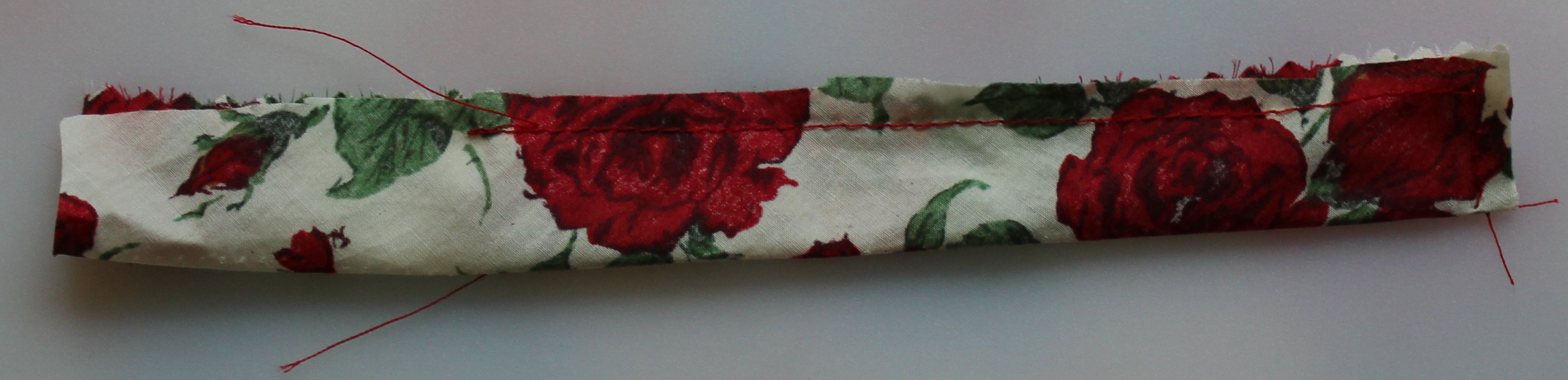 Notes: The rectangle that formed the hood was 4cms x 19 cms and it is a little on the loose side, you might want to size down here. To cover my wire hanger I used five 2cms x 30 cms strips. The fabric that I used was some Liberty lawn that doesn’t do the fraying thing, if you try a fabric with a tendency to fray you might want to try cutting the strips on the bias?