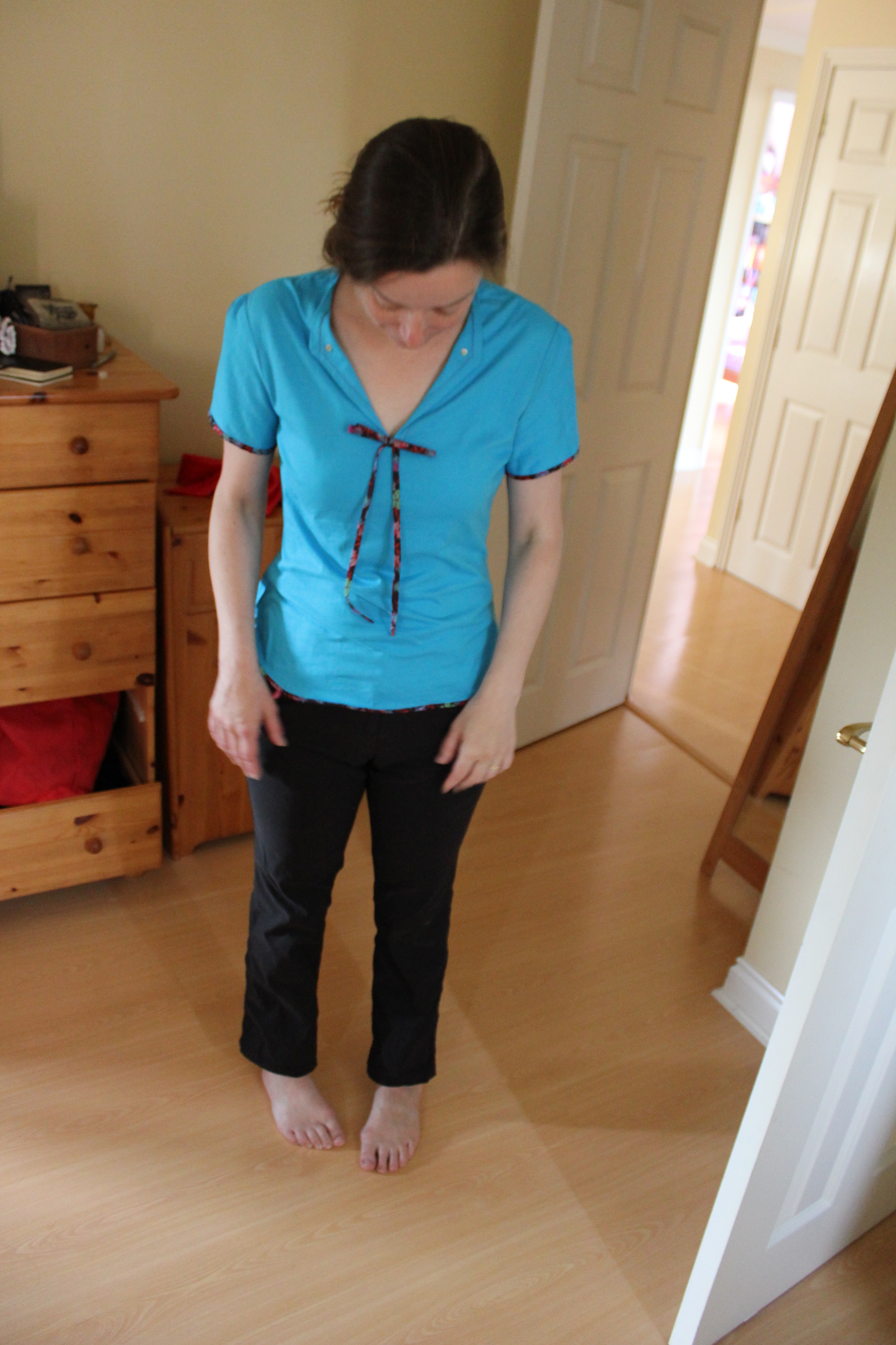 Ah-ha. What is quickly becoming a signature folded back neckline might just work. Perhaps this make is not destined for the recycling bag and perhaps I’m justified in my continued seamstress-ness.