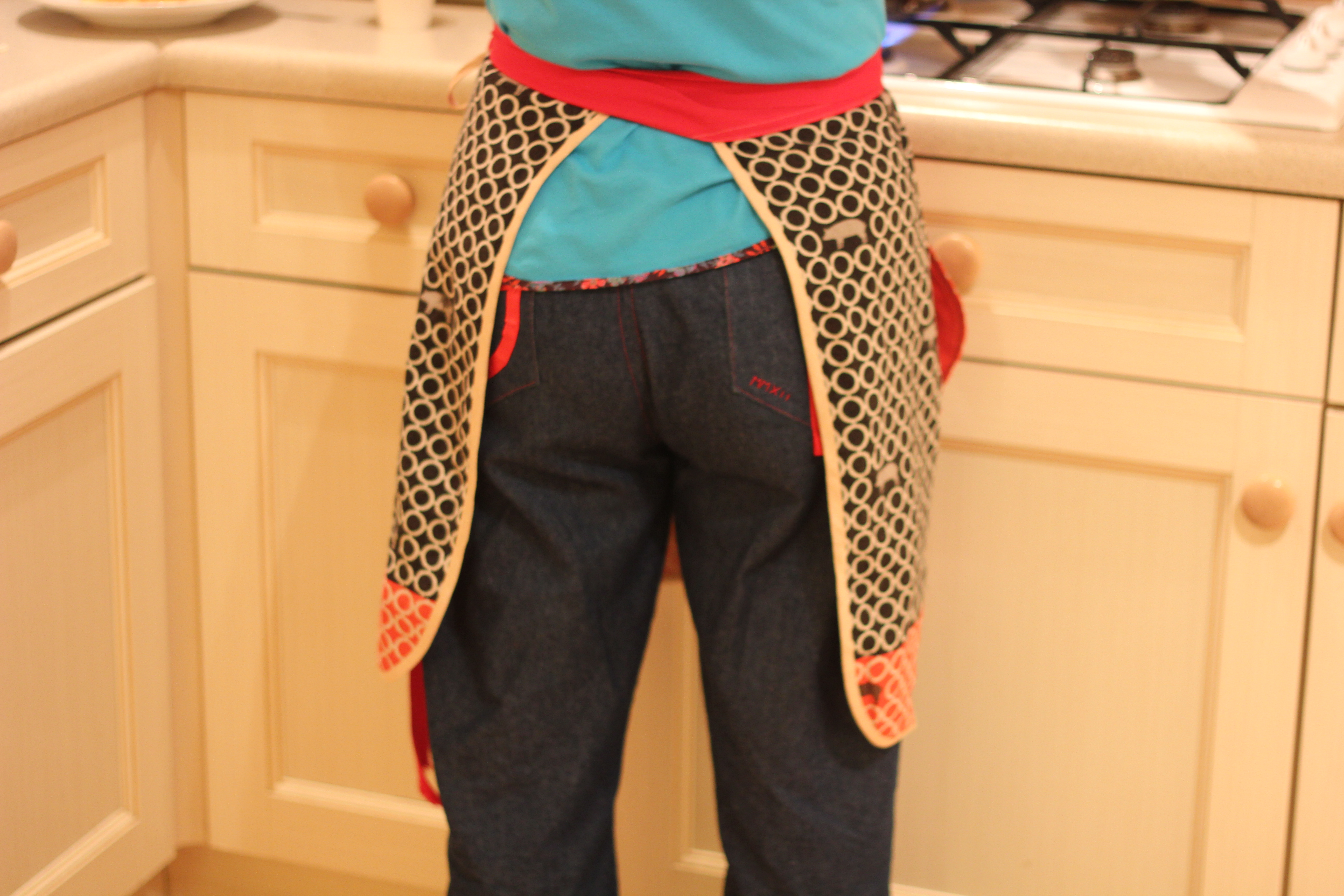 Loving my pocket embellishment, sure hope they stand up to the washing machine. If they do? I will consider myself finally liberated from denim-related changing room shame. I can once and for all cast off the oppression of ready-to-wear jeans in rubbish leg-length and unrealistic hip-to-waist ratios. Yay! I’ll leave you with a little bit of an apron-y teaser-y taster: