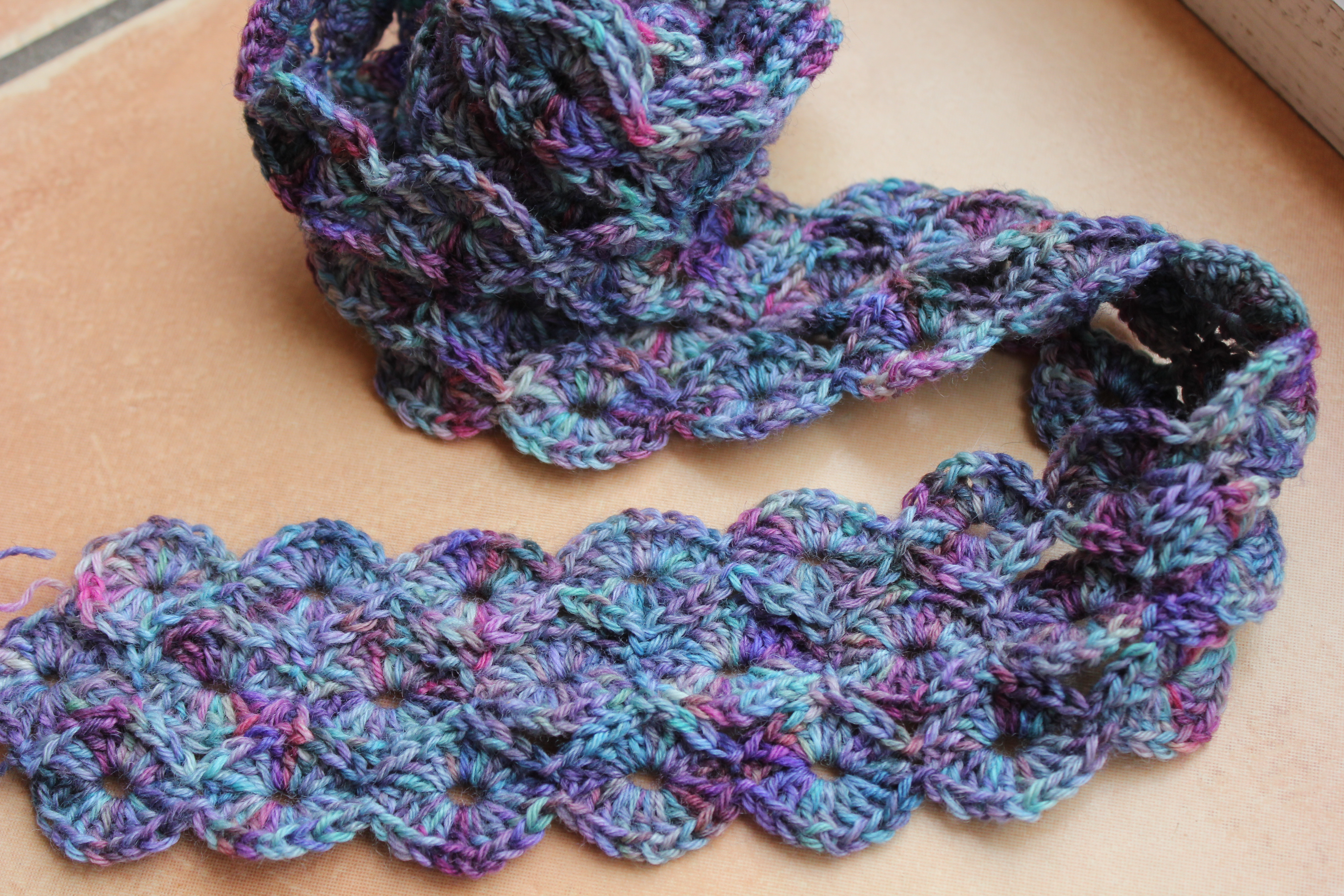 There’s another iteration of the Araucania yarn. Turns out that I was right all along, there wasn’t enough for a wide scarf so a skinny scarf of circles is the way forward.