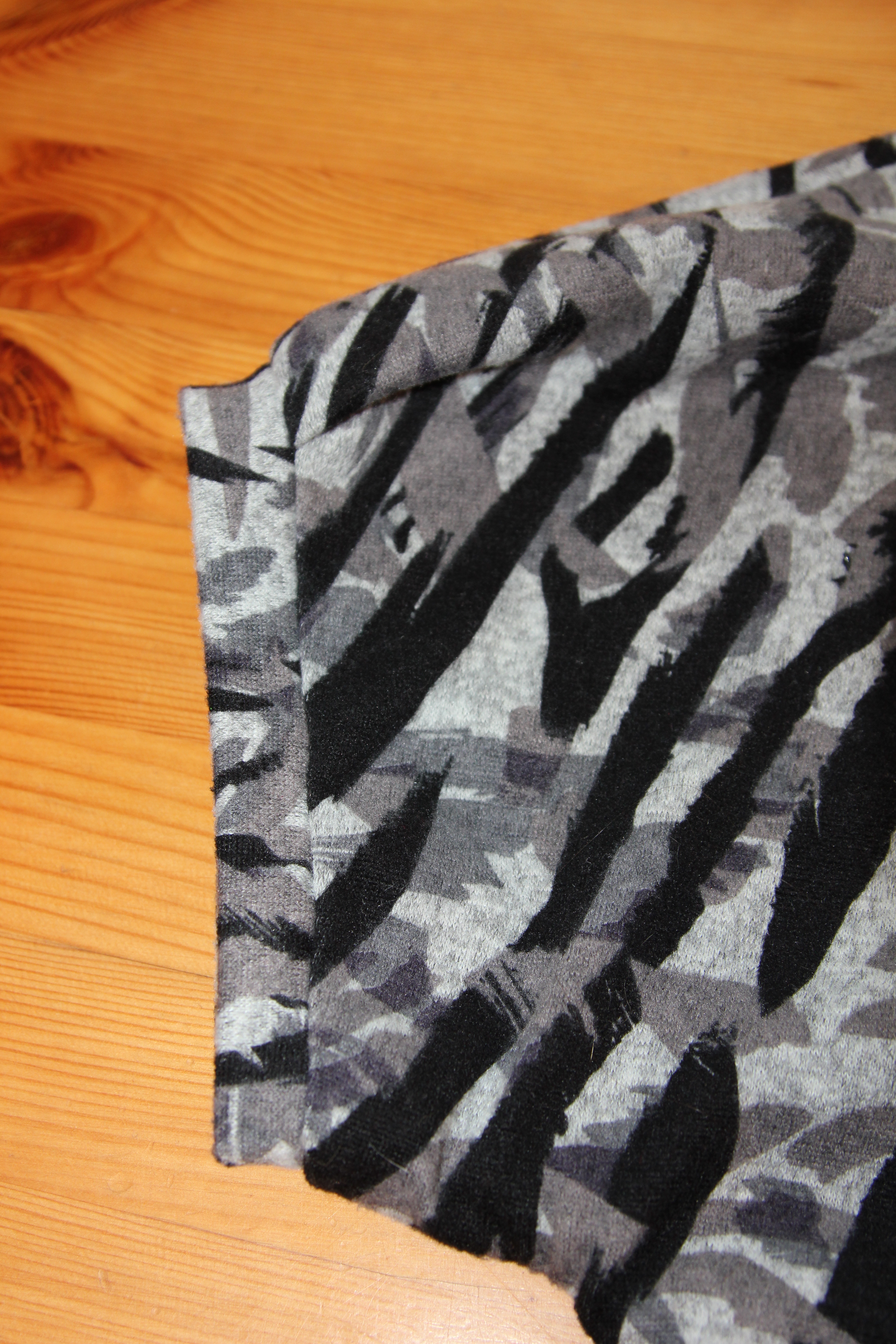 The problem being that I cannot decide if this print is ‘Hint of zebra’ or ‘Homage to Zorro’ therefore I have decreed it shall be named something in between. Which I have yet to decide. Of course it could also have feline nomenclature as Scoobs has been neatly demonstrating how her stripes would also be perfect Savannah camouflage.