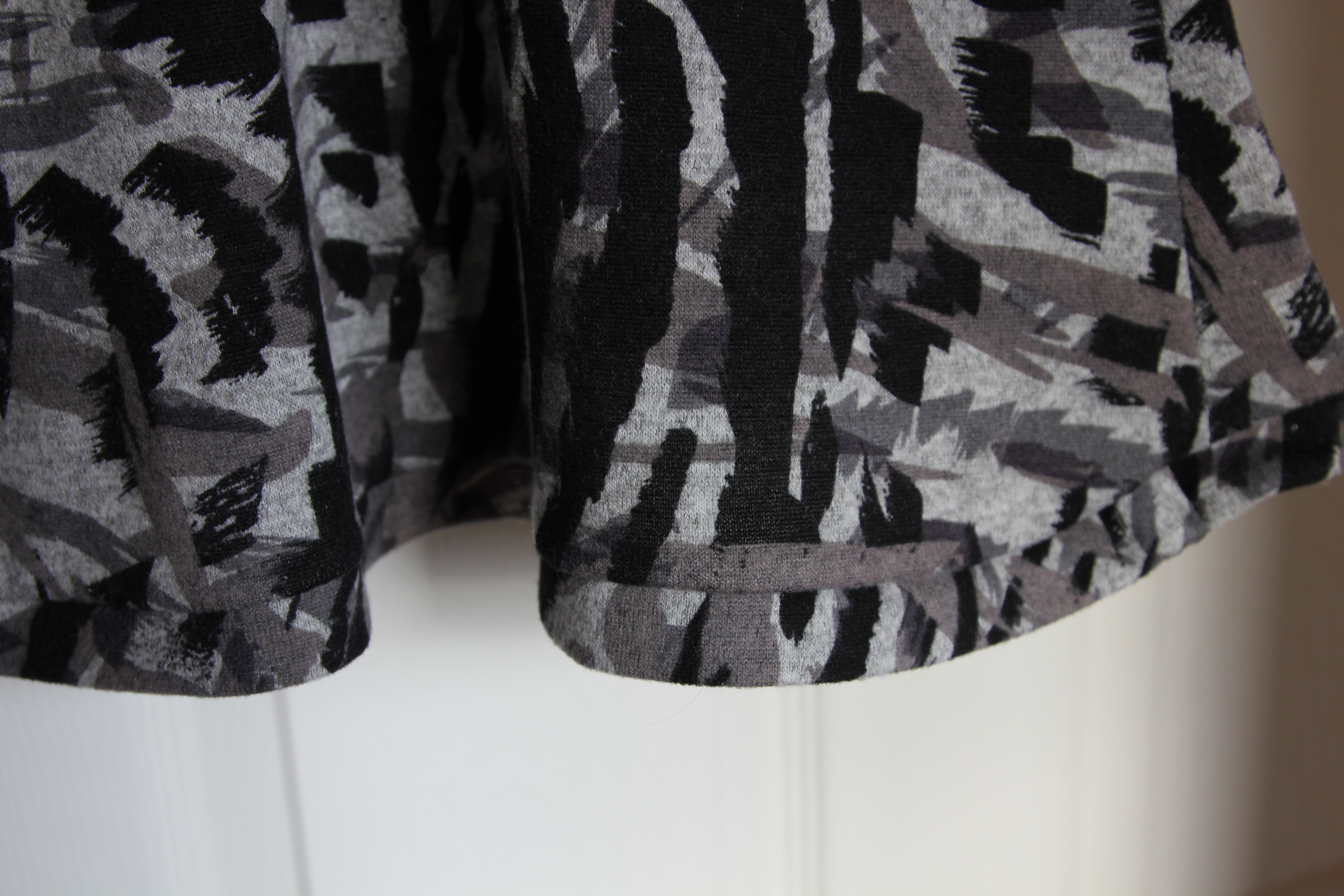 It’s fifteen inches shorter than suggested as I was using a remnant. I’ve curved the hemline as I couldn’t resist. And finally, the actual hem. The only word I have is *puts on my best Muttley mumble* sassafrassarassum. It curled and twirled and flipped and would not sit. What would have worked better here?