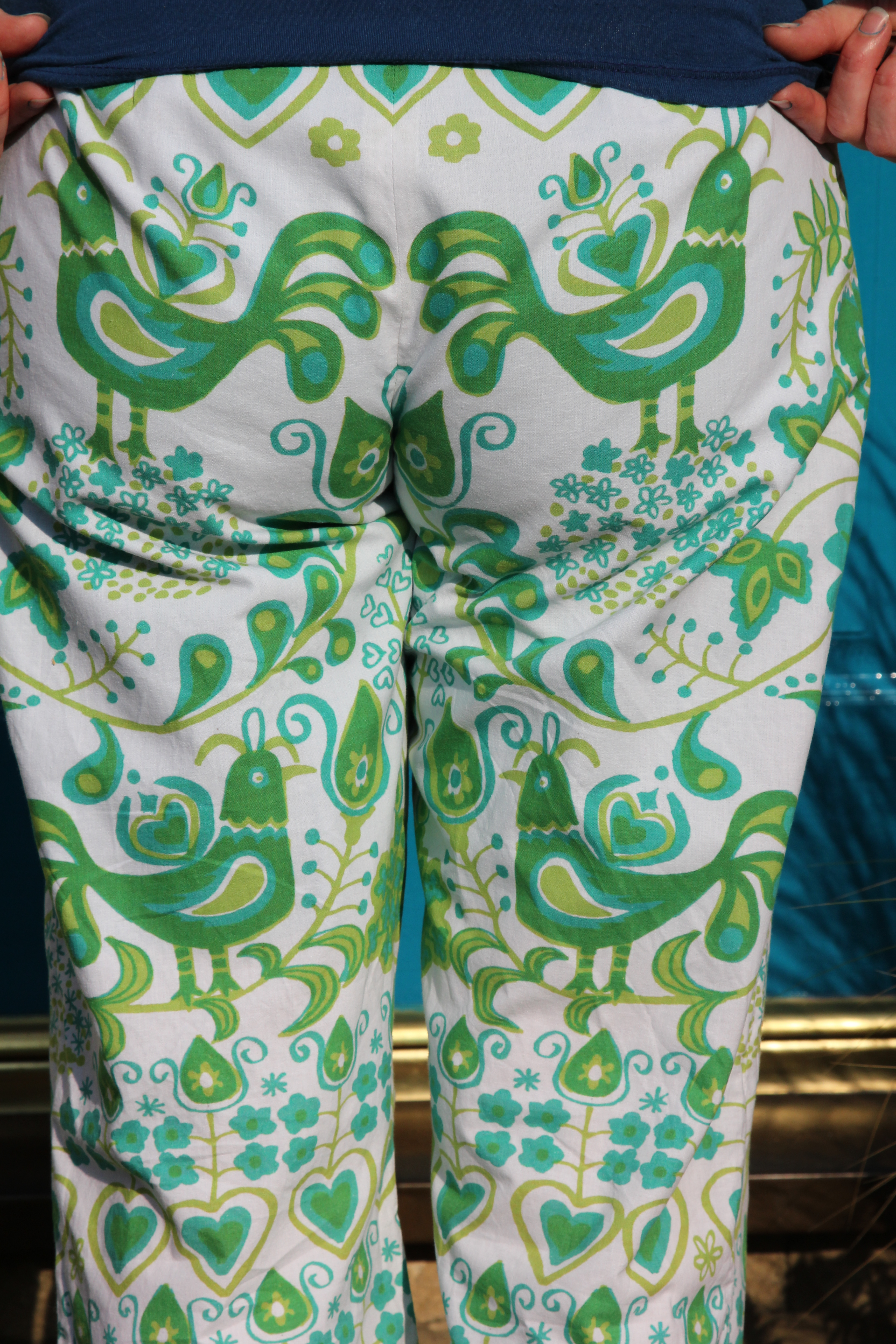 I made the size 12 and with judicious slimming of the bum seams they neatly fit my 38 inch hips. Now, you know by now that I cannot let anything alone. So. Where did I stray from the ‘structions?