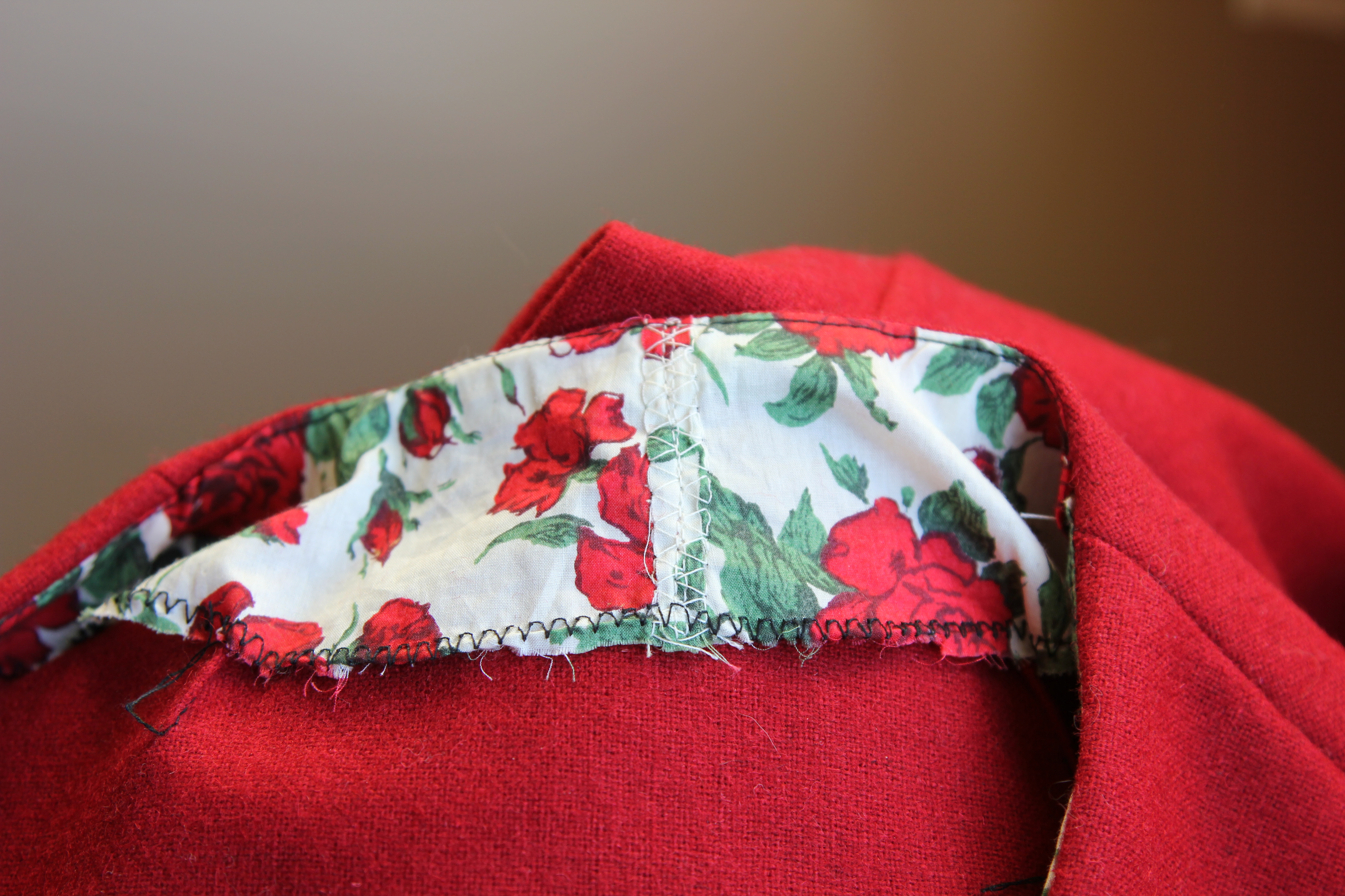 Two new (to me) stitches were employed.  I forgot to cut the back facing on a fold so I had to graft my two halves together using a ‘joining stitch’.  Pretty pleased with the result, although this photo does also showcase my slap-dash overcasting: