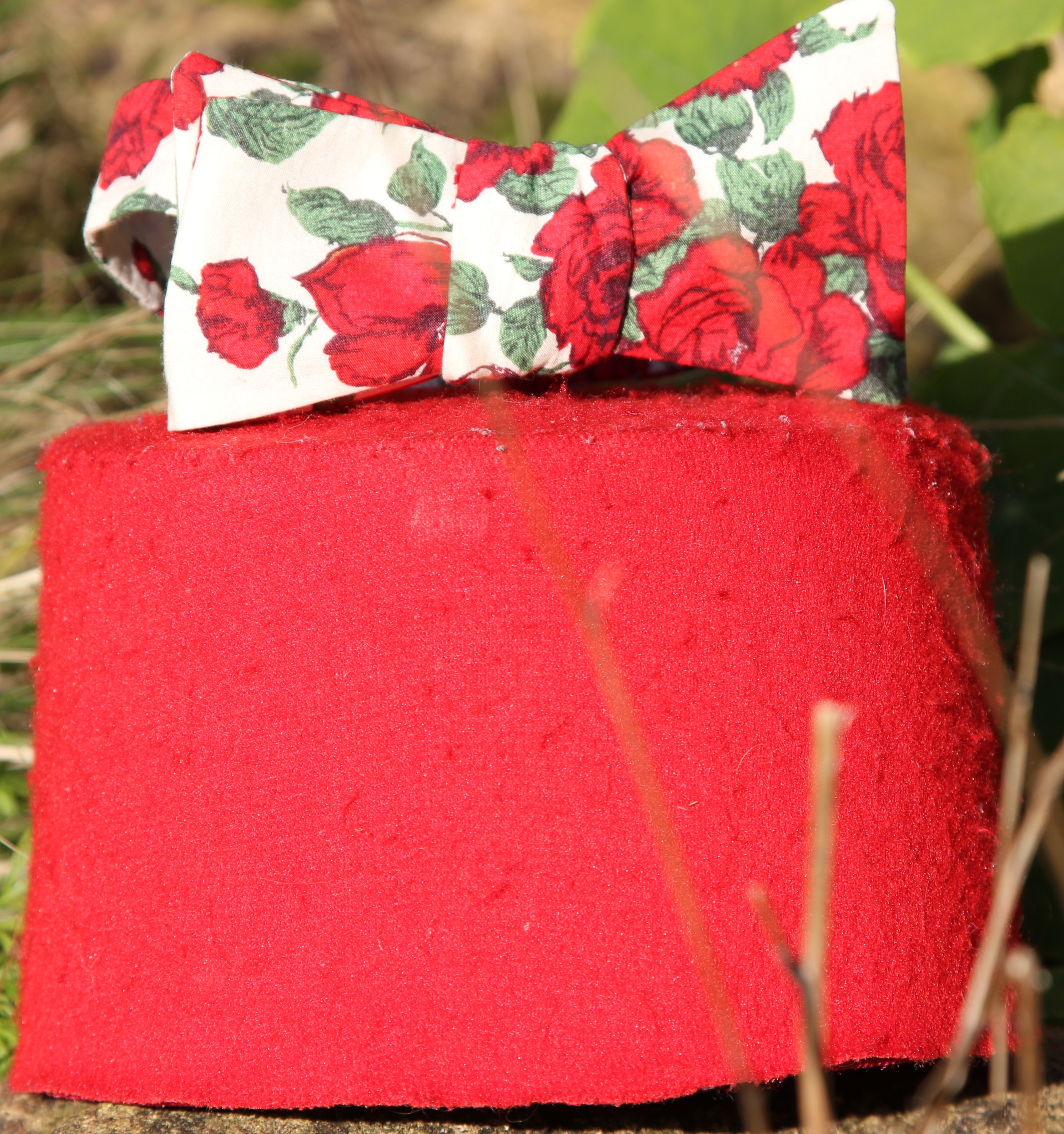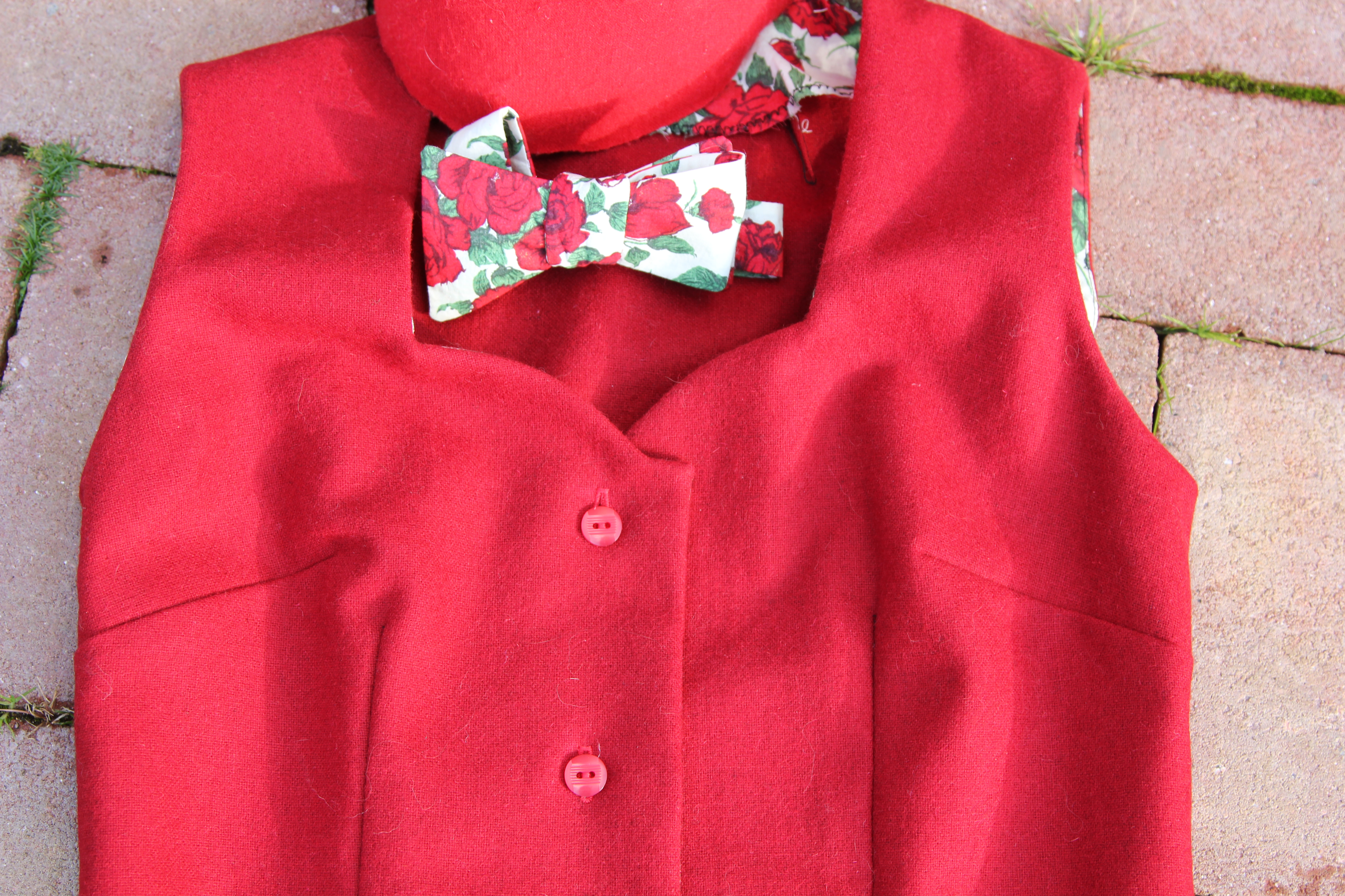 The bow tie pattern is courtesy of Miss P, the fabric is Liberty Carline .  I made some mis-calculation with my neck measurement so I can’t currently wear this on my neck…  Apart from that, I like muchly.
