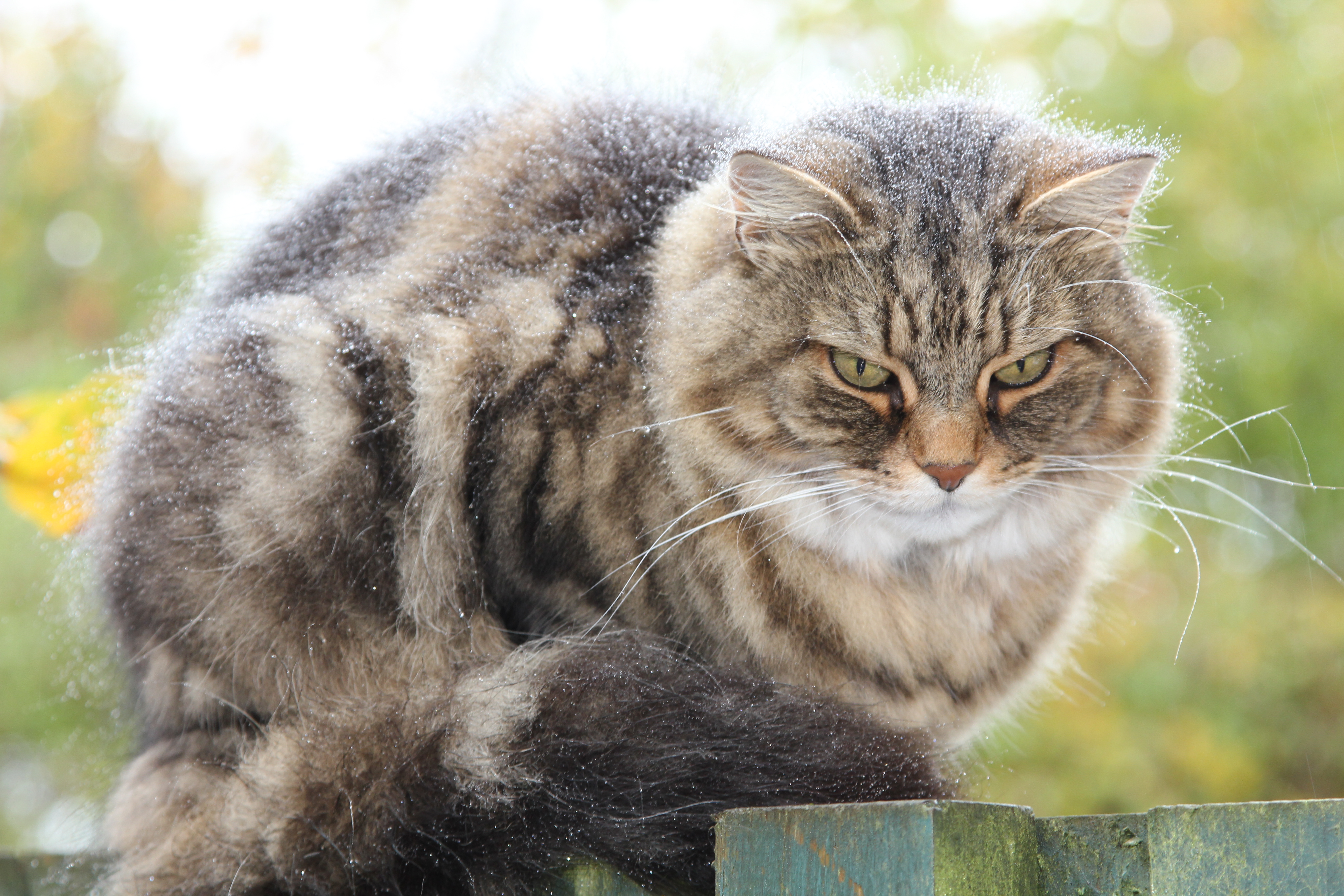 We await your answer. We await outside in the wet, on top of the fence, accumulating droplets of water like some sort of cloud, waiting for you to stop using the machine-that-I-hate-with-every-fibre-of-my-being.