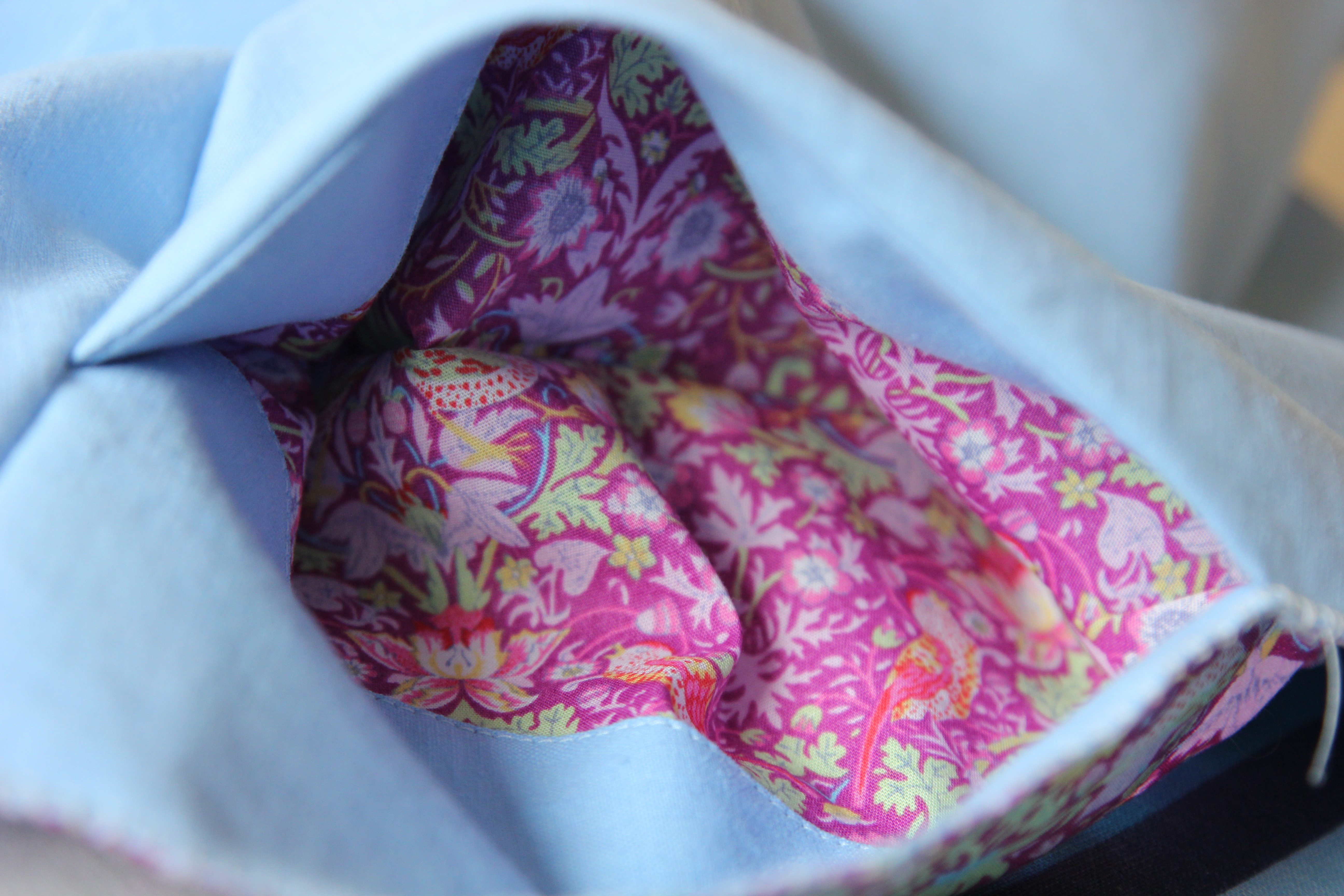 Try as I might I could not work out why the blue bed sheet and the scrap of Liberty Strawberry Thief in fuchsia and lime was making me smile so. That was until today when I was gazing longingly at my neighbour’s cherry tree beginning to blossom against the backdrop of a crisp blue sky: These colours remind me of spring! And spring with its lengthening days and its buds and its blossom makes me happy. So happy that I had to capture the moment to share with you, wobbling precariously at the top of the climbing frame I took these: