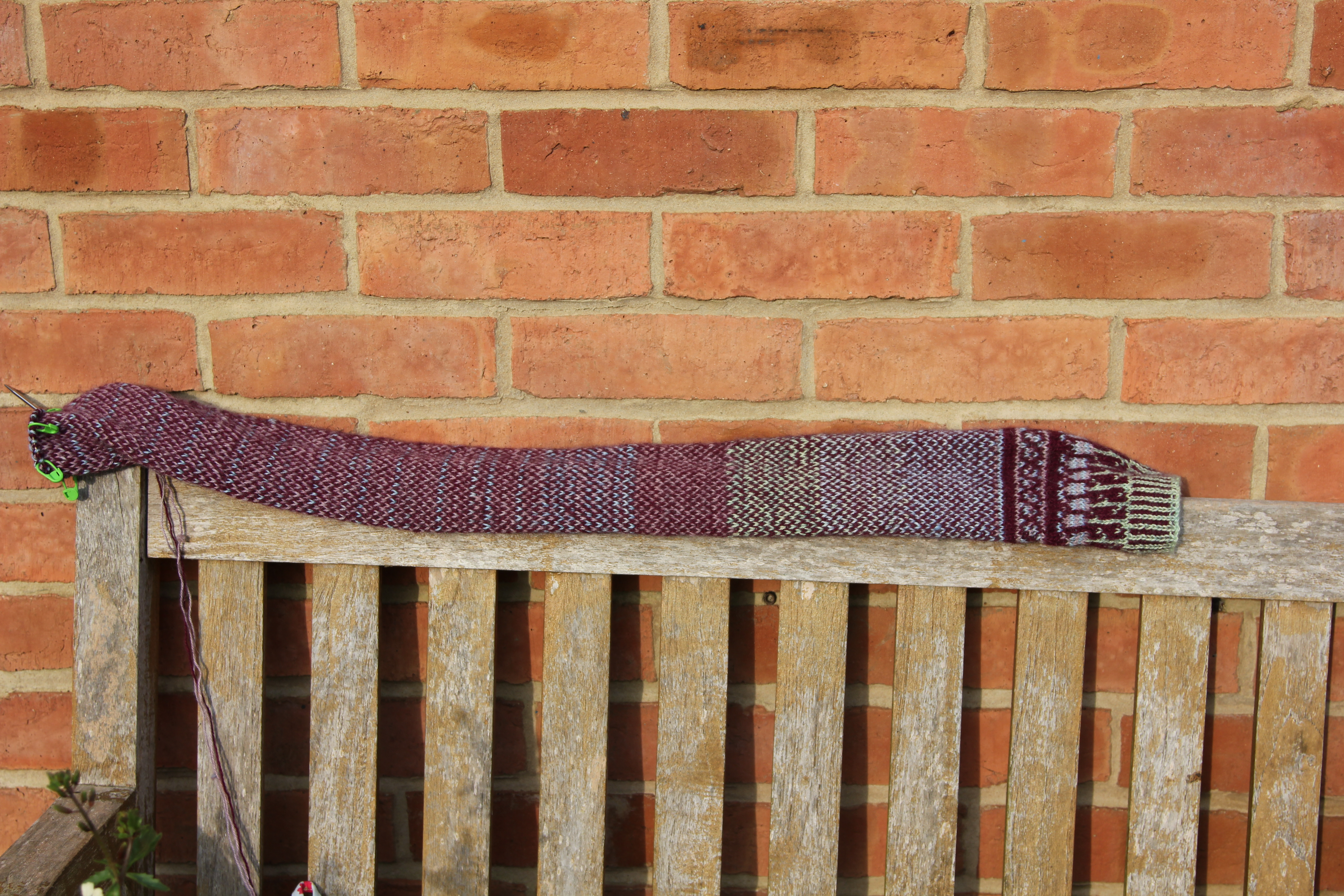 As someone who is not very good at navigating but who absolutely does it by landmarks I agree. I love hexagons and think they would make a very good blanket, since you ask. But most of all I love the slow growing scarf and how it obviously loves lazing around on the wooden bench in the sunshine like a snake.