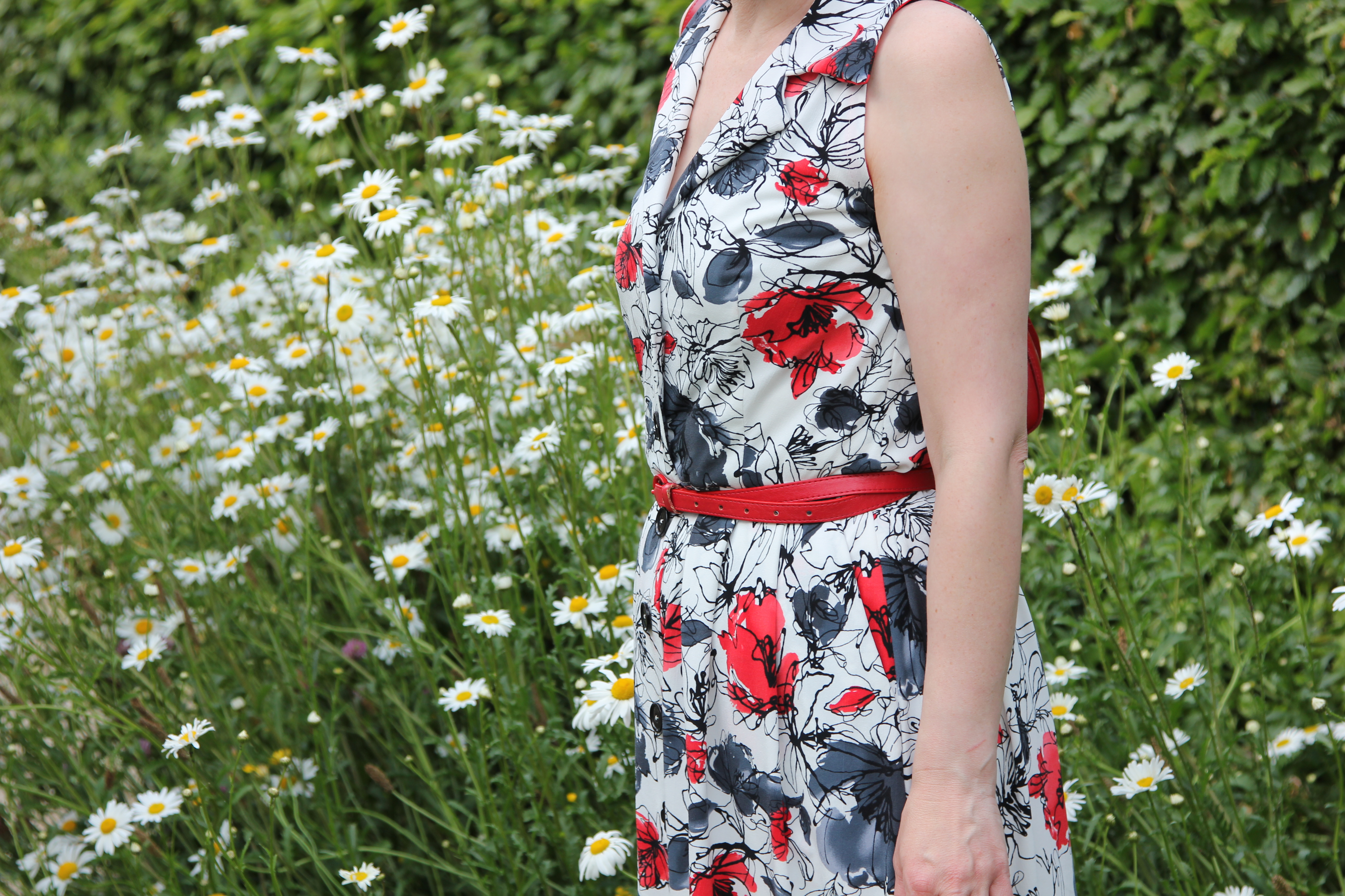 There’s something else though.  What makes my sundress even weirder is –  I made it with a knit fabric.  There I said it.  I haven’t shocked you have I?  Is that the strangest thing that anyone has ever told you?  I wouldn’t be surprised.  It’s just that it felt right and if it feels right it can’t be wrong.  Can it?  Yes, the collar is a little soft, but I like it like that.
