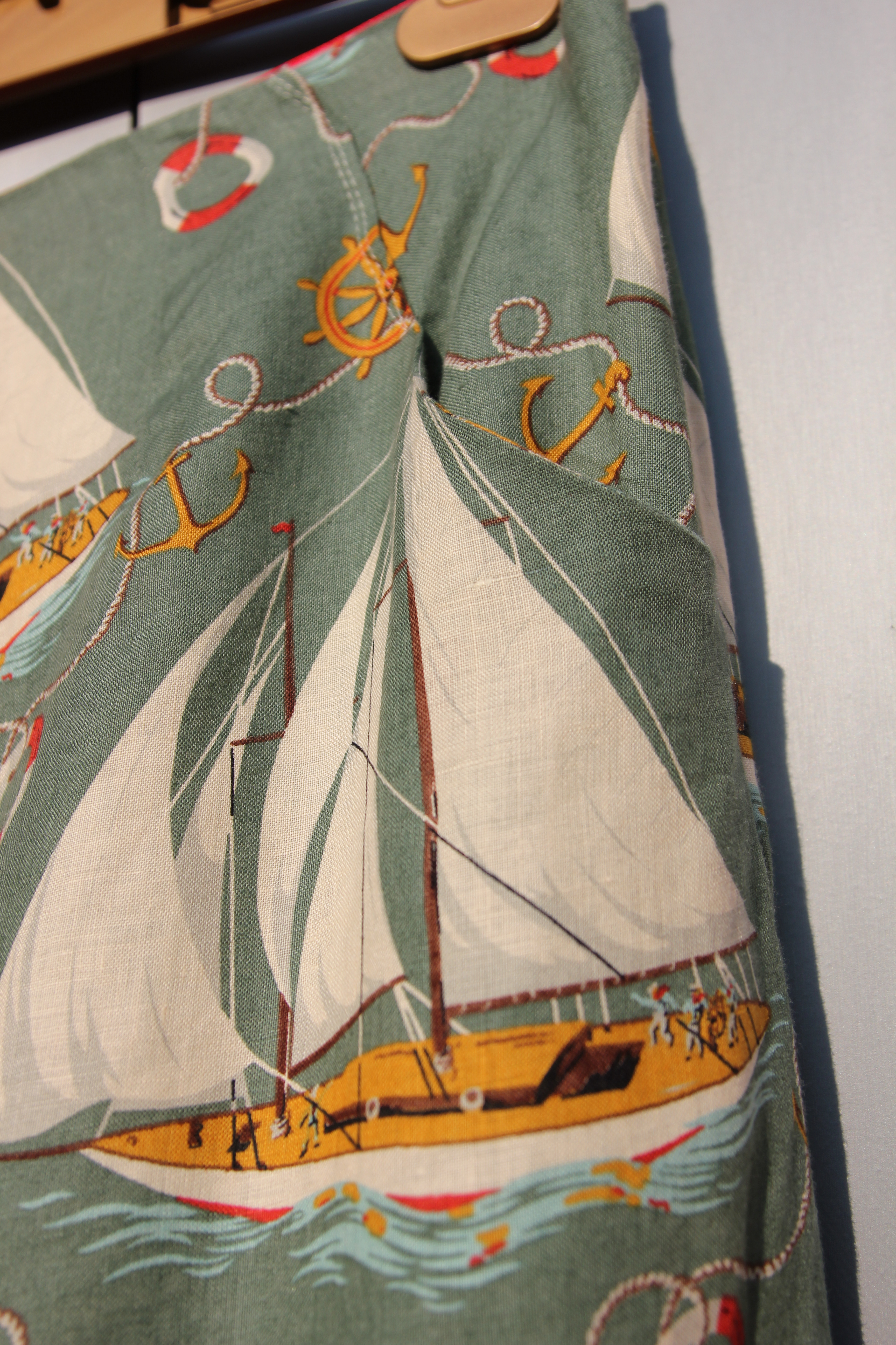 Sew. The sewing. These are two pair of almost-but-not-quite Margo trousers. One in a nautical linen from Guthrie and Ghani, one in a floral cotton From Hong Kong.